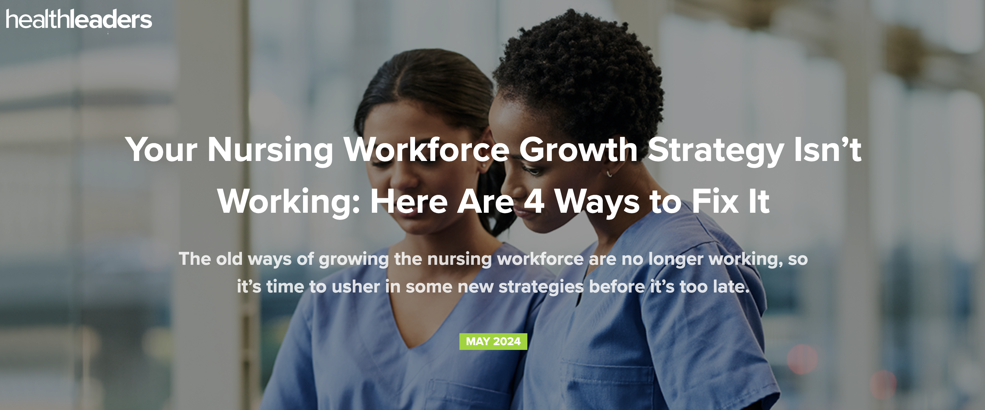 So what did we look into this month? Well, the greatest challenge facing nursing leaders today is workforce development. Health systems are in dire need of solutions that improve both recruitment and retention.
