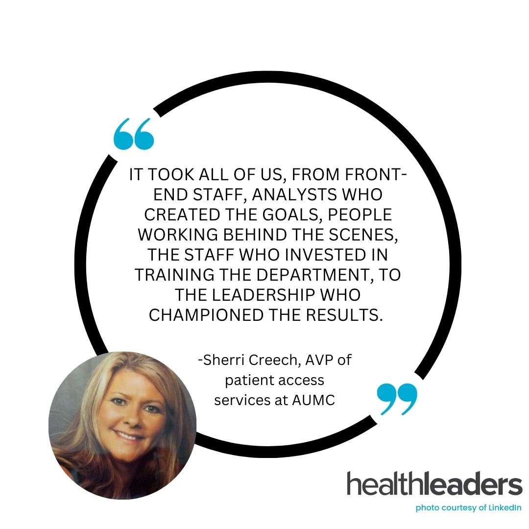 HealthLeaders recently chatted with Sherri Creech, AVP of patient access services at AUMC, on a 12-month strategy she implemented to save big, streamline front-end processes, and help ensure financial stability moving forward.