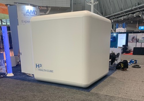 The H3 Cube is a self-contained room that can be dropped into a specified location to give people an on-demand and discrete virtual link to healthcare providers. It can include a chair and a bed and dozens of digital health devices, most of which are supplied by Boston-based AMD Global Telemedicine, and can be customized to meet a provider’s specifications.