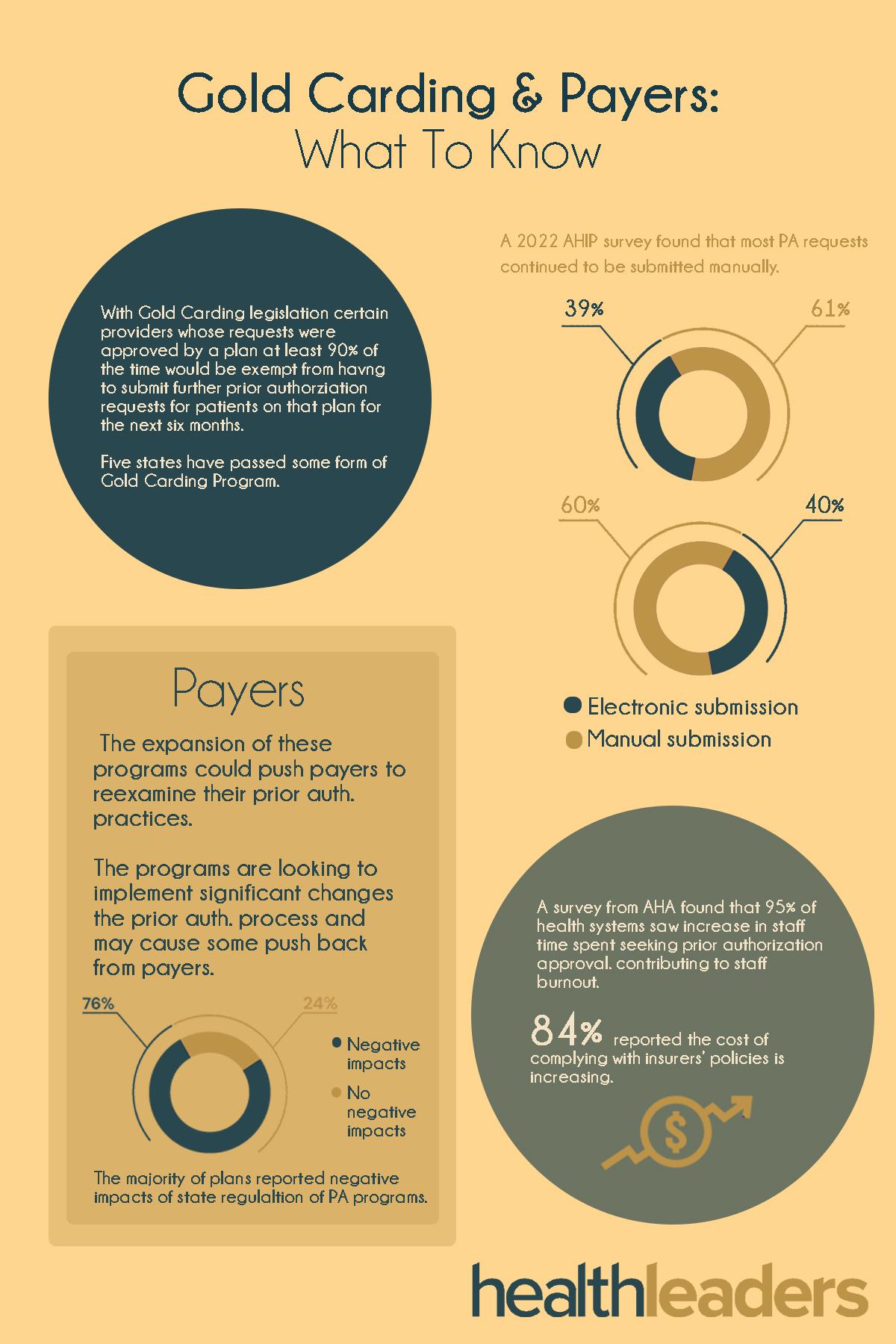 The states are fighting back against prior authorization woes. In Janaury, the Biden adminstration announced new rules to help streamline the PA process, but states are taking it even further with Gold Carding legislation. Studies have shown that prior authorization has been a big pain point for health systems, and is contributing to things like worker burnout and higher costs.