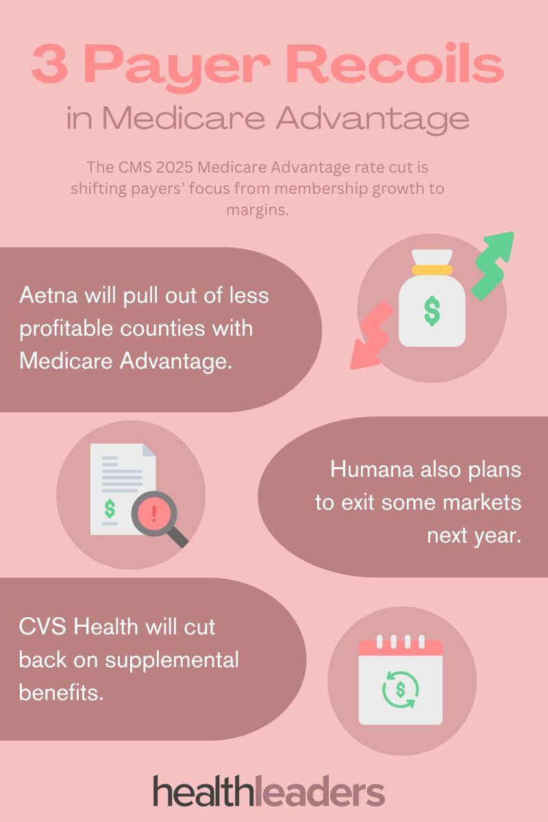 CVS Is another payer looking to readjust. CVS Health CEO Karen Lynch said it will adjust plan-level benefits in 2025. Supplemental benefits like fitness reimbursement could be on the line.