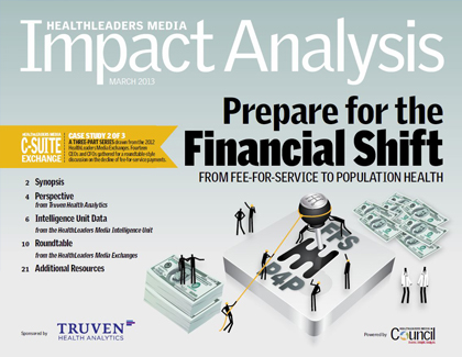 Of all the strategic shifts facing health systems in the coming years, none involves so many underlying fundamentals of the business as the shift away from a fee-for-service model of reimbursement to one more based on risk-bearing contracts and population health models. At HealthLeaders Media's 2012 CFO Exchange and CEO Exchange events, senior executives described the shift as a great leap forward with both high potential and a big downside.