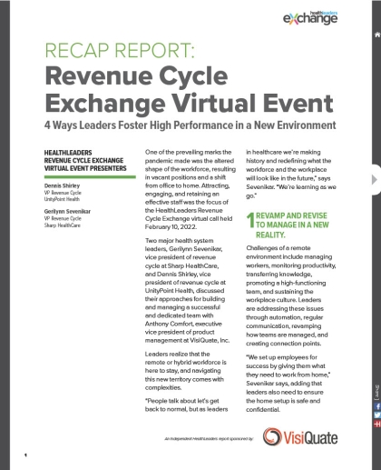 One of the prevailing marks the pandemic made was the altered shape of the workforce, resulting in vacant positions and a shift from office to home. Attracting, engaging and retaining an effective staff was the focus of a the recently completed HealthLeaders Revenue Cycle virtual call.